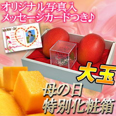 カーネーションと写真入りメッセージカードを添えて【宮崎マンゴー大玉2玉化粧箱】母の日専用手作りカーネーションと写真入メッセージカードを添えて【送料無料】
