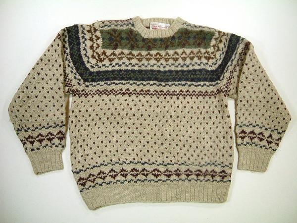 nsw225 L JohnAshford レトロ柄ハンドニットウールセーター 古着