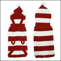 フード付きのボーダー柄ニット第二弾。色は3パターンご用意フード付きボーダーニット/第二弾:レッド[犬の洋服]