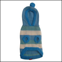 フード付きのボーダー柄ニット。色は3パターンご用意しましたフード付きボーダーニット/ブルー[犬の洋服]